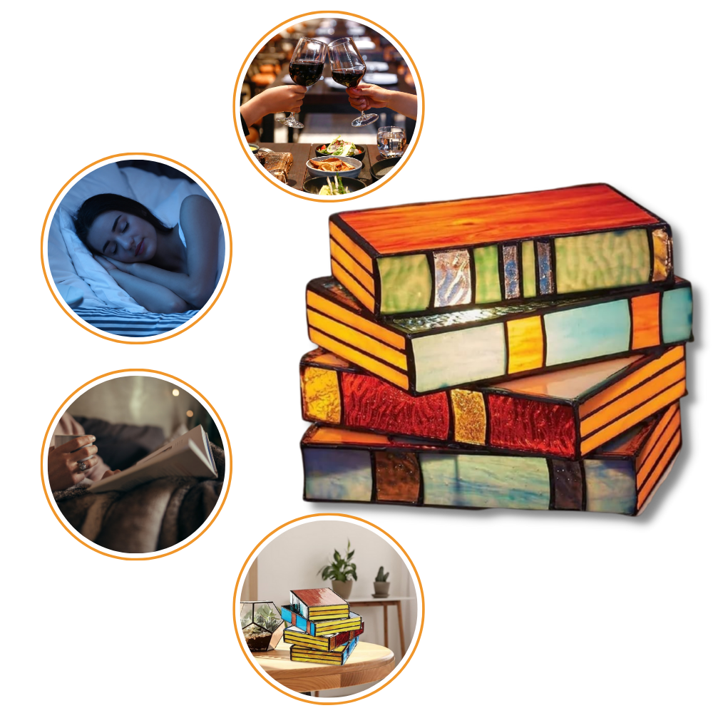 Designed to be more than just a light source, the Timeless Stacked Books Lamp serves as a beacon of tranquility in your home. Its carefully crafted stained glass panels emit a soft, inviting glow, transforming any room into a sanctuary of peace and relaxation. As the warm light permeates through the vibrant hues of the glass, it casts a kaleidoscope of gentle colors, creating a serene atmosphere that's ideal for delving into your favorite novel or simply unwinding after a busy day. This lamp is not just an object, but a companion that enhances your moments of solitude and reflection, making every corner of your room an inviting space for relaxation and contemplation.
